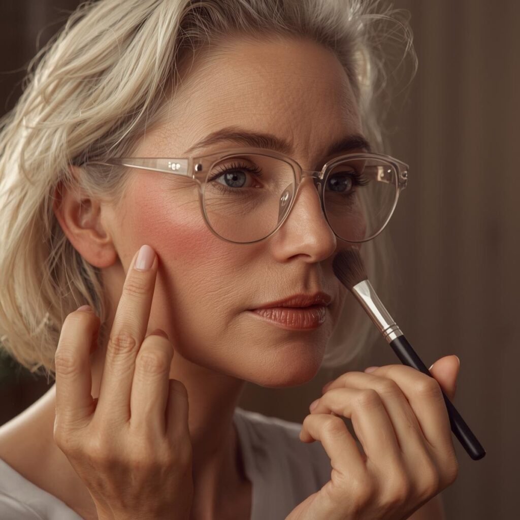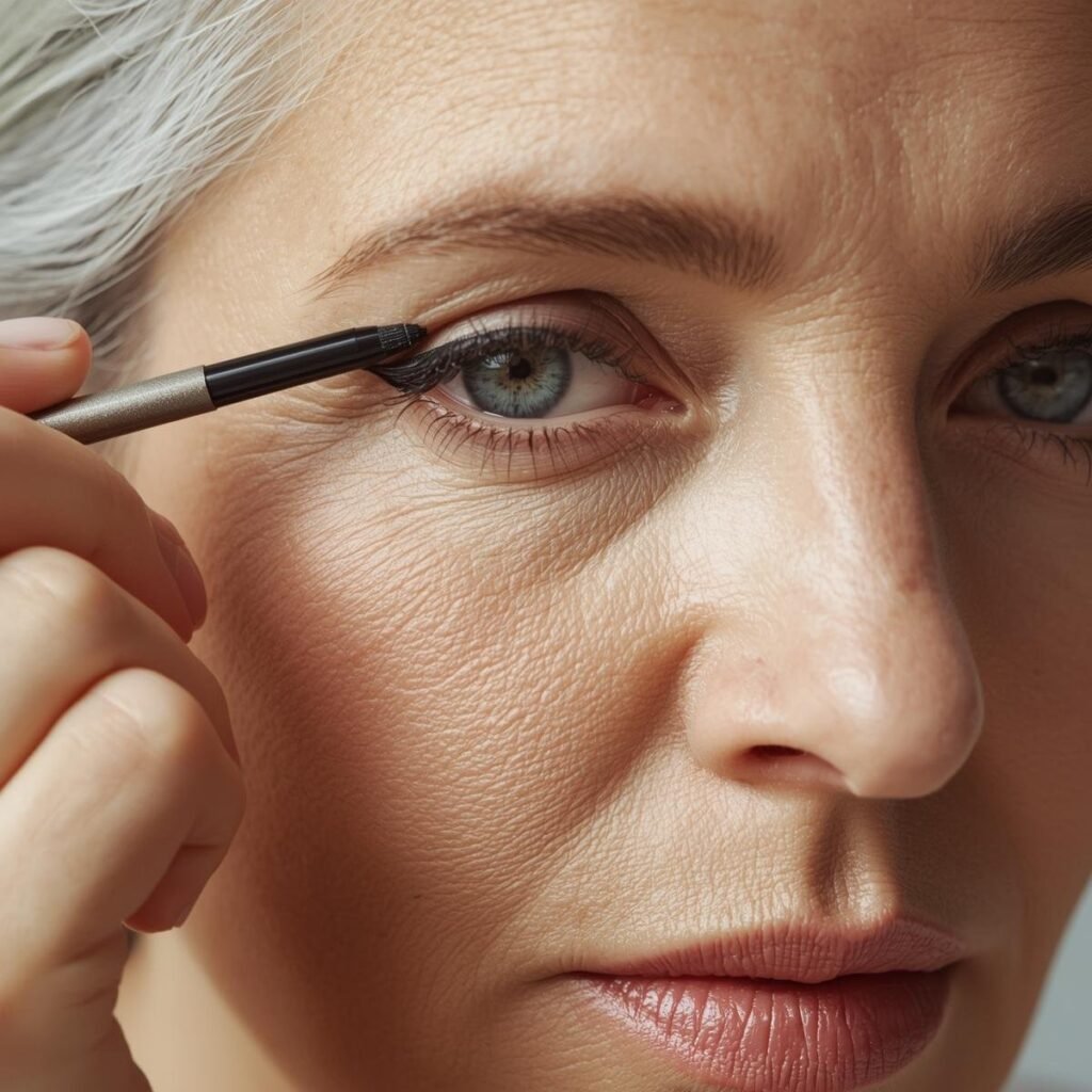For mature skin, avoid heavy powders around the eyes. Focus on hydrating formulas, cream blushes, and light-reflecting foundations for a natural, fresh finish.
