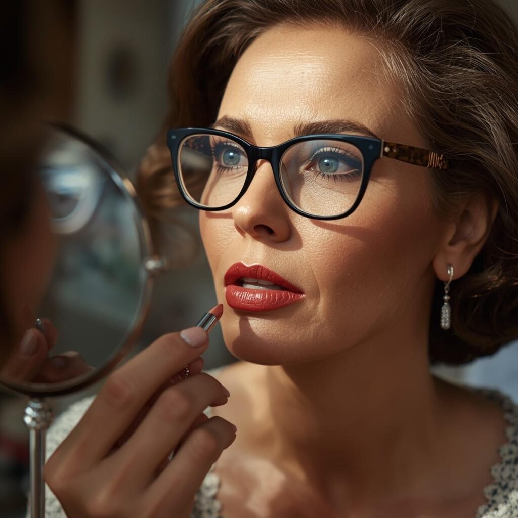 Glasses draw attention to your eyes, so a flattering lip color can balance your look. Neutral or soft rosy tones work well for everyday wear, while bold shades are perfect for a statement look.